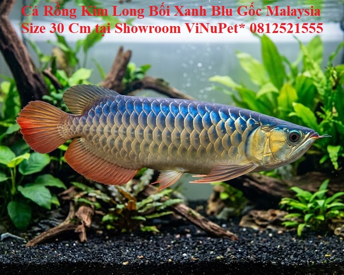 Cá Rồng Kim Long Quá Bối Xanh Blu 30cm là dòng cá rồng cao cấp được ưa chuộng trong giới chơi cá cảnh nhờ vẻ đẹp sang trọng và giá trị phong thủy nổi bật. Cá có nguồn gốc từ Malaysia, sở hữu màu vàng ánh kim phủ lưng kết hợp sắc xanh blu đặc trưng, tạo nên hiệu ứng thị giác mạnh mẽ và cuốn hút.